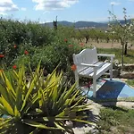 ベッドルーム1室のOria Brisaヴィラ無料の専用駐車場と山の景色を望むテラスがあります。